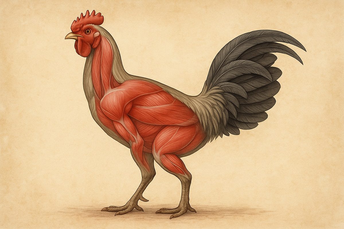 ร่างกายของไก่ชนเปรียบเสมือนเครื่องยนต์สมรรถนะสูง ประกอบด้วยกล้ามเนื้อ 2 ชนิดหลักที่ทำงานต่างกัน และตอบสนองต่อการฝึกคนละแบบ การเข้าใจกล้ามเนื้อสองชนิดนี้คือเคล็ดลับในการสร้างไก่ที่ “เก่งครบเครื่อง”